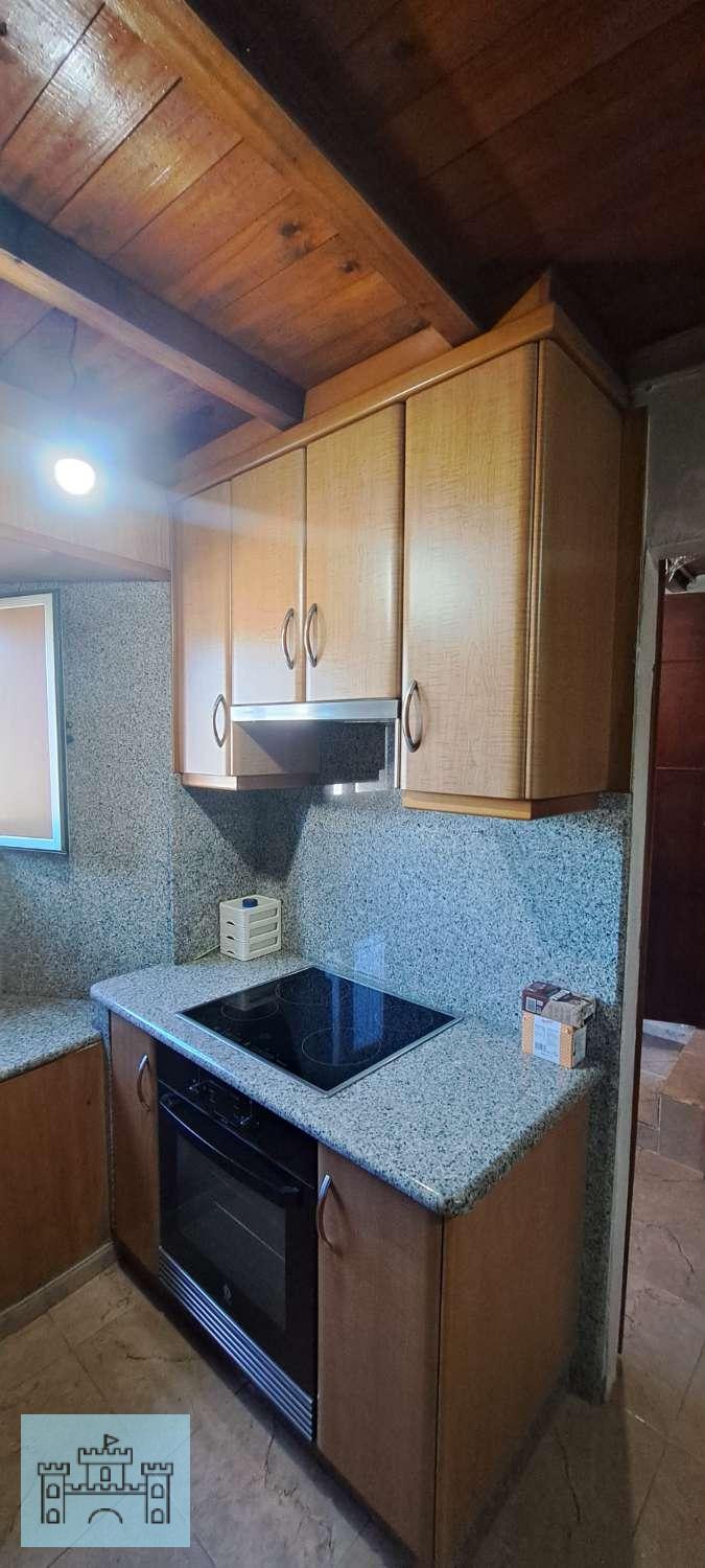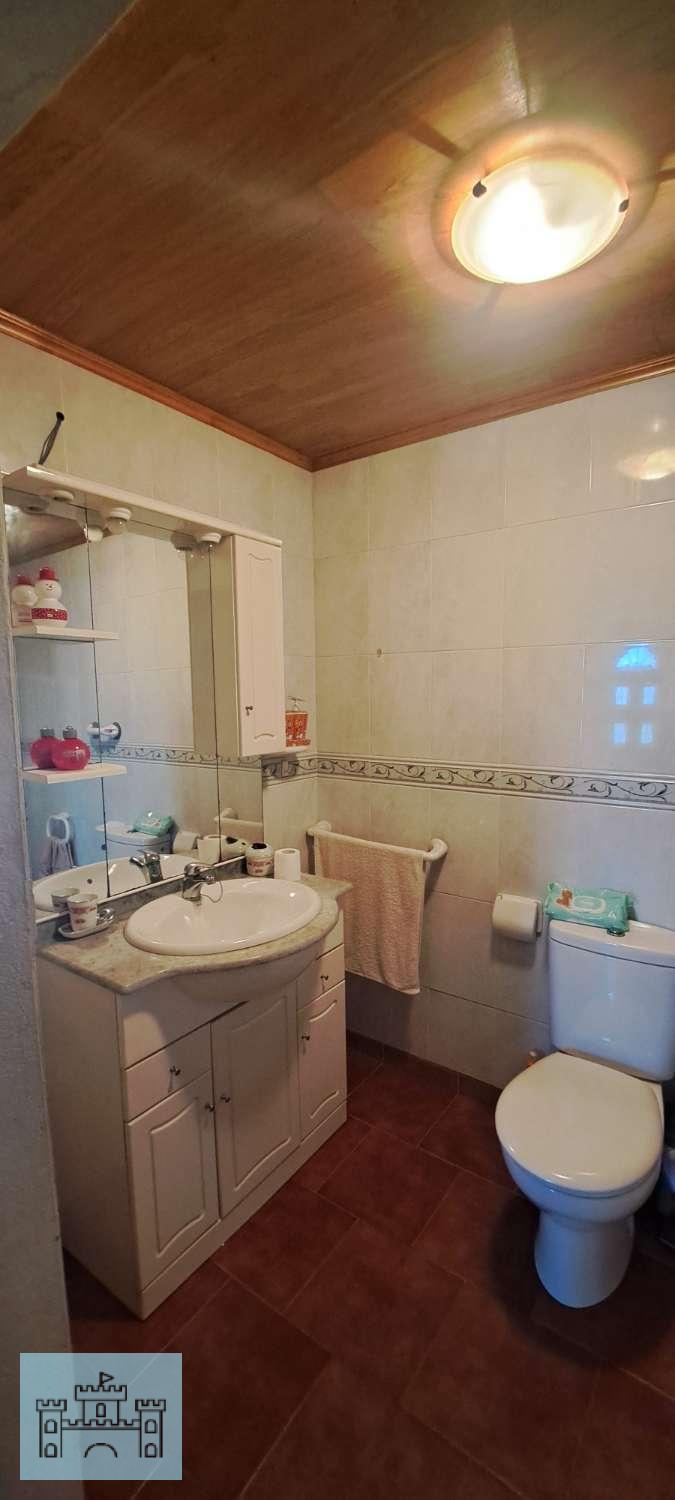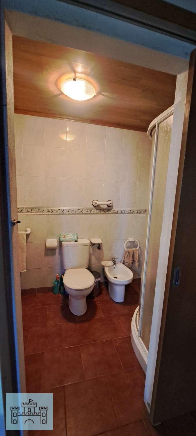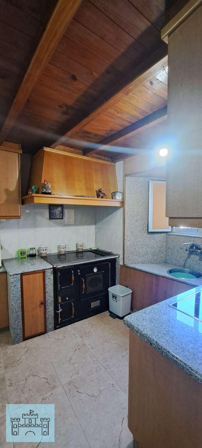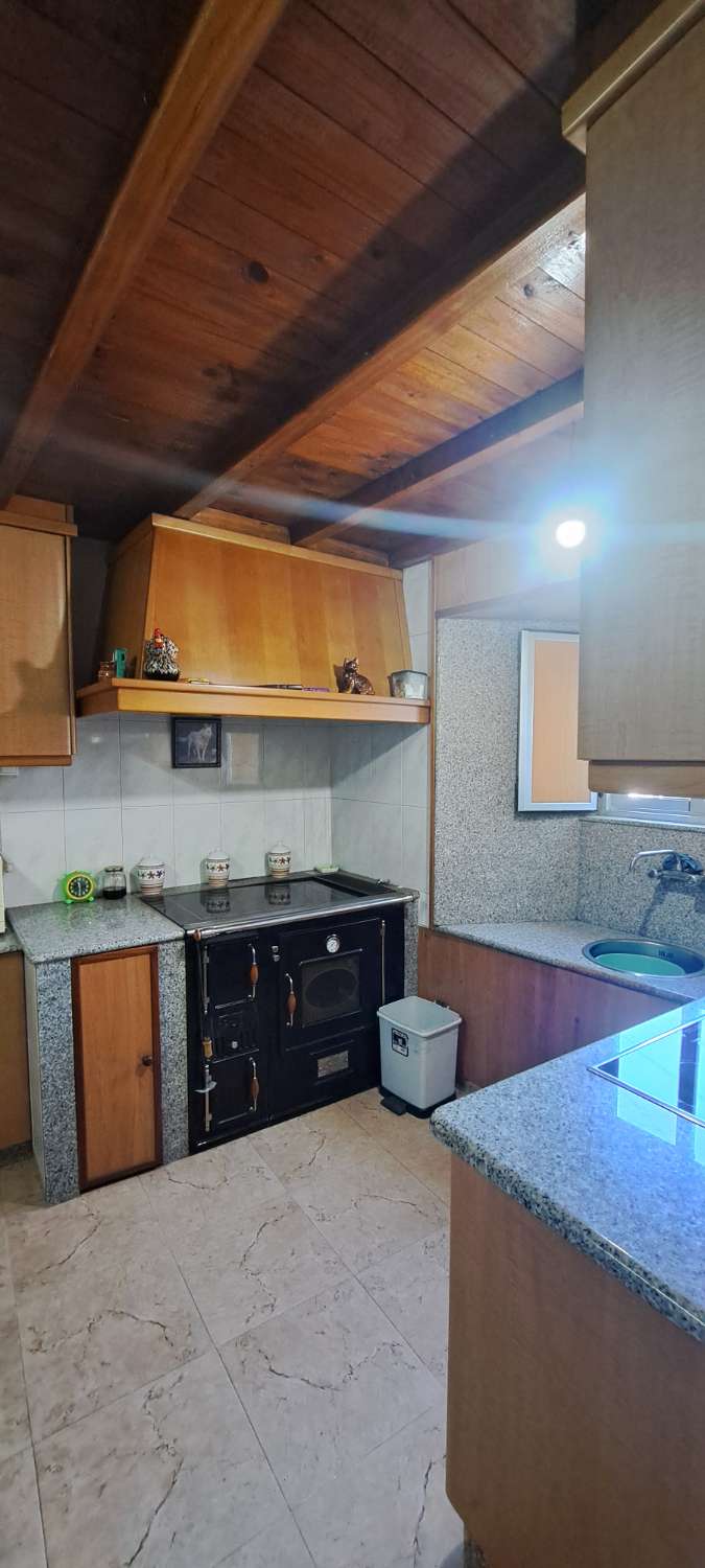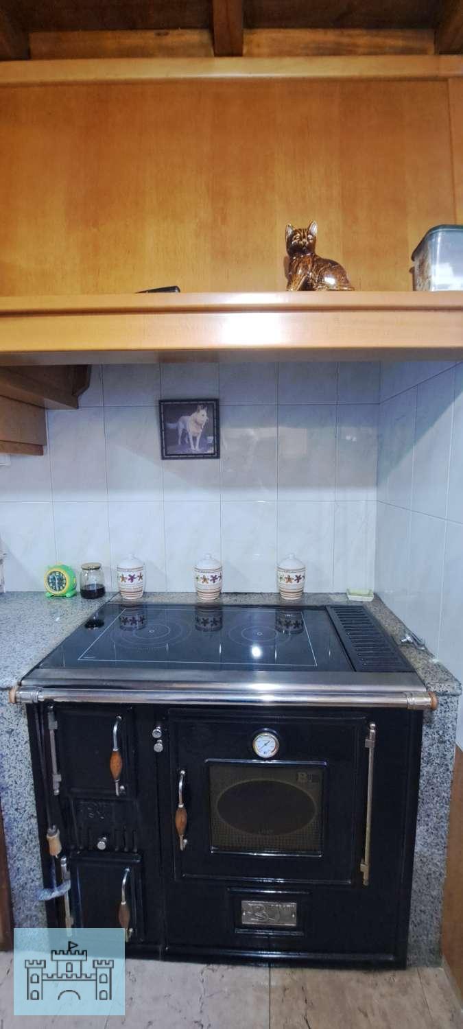 En la planta baja tiene la cocina (10m2), totalmente reformada, con una cocina de leña que hace sus veces de calefacción para toda la casa. Tiene también el salón (22m2) y un baño completo con plato de ducha (4m2). Esta planta está reformada, con instalación de fontanería nueva, cocina y baños también nuevos, así como las ventanas de toda la casa y puertas de entrada.