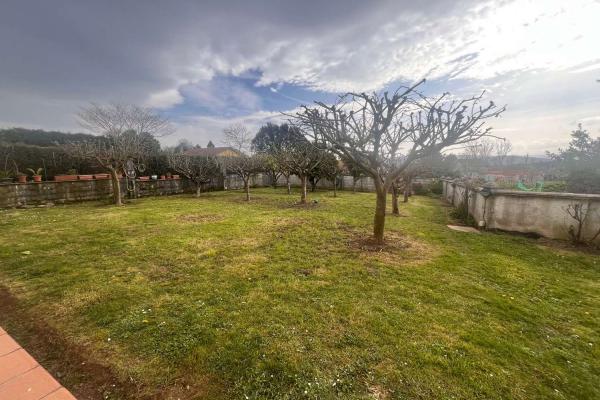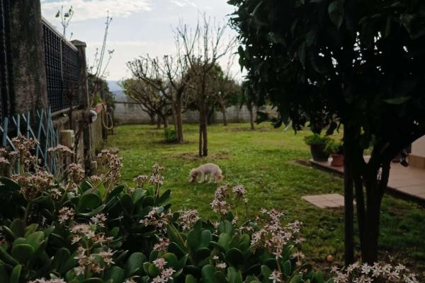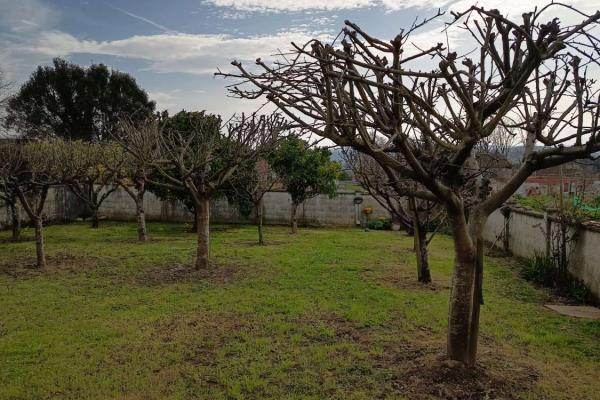 A través de las cocinas sales directamente, y al mismo nivel del patio exterior, donde nos encontramos un elegante jardín con árboles frutales y ornamentales, y una plaza de garaje exterior, cubierta, A la parcela se accede a través de un portal para tráfico rodado con motor, y una puerta peatonal que te lleva a la planta primera donde encontramos: