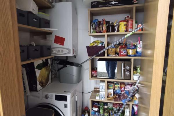 En la planta baja nos encontramos una habitación con armario empotrado, una amplia cocina independiente, totalmente equipada, zona de lavandería y despensa, y amplio zapatero así como también un baño completo con plato de ducha. También tenemos salón comedor. Todas las estancias son exteriores, salvo despensa y zapatero.
