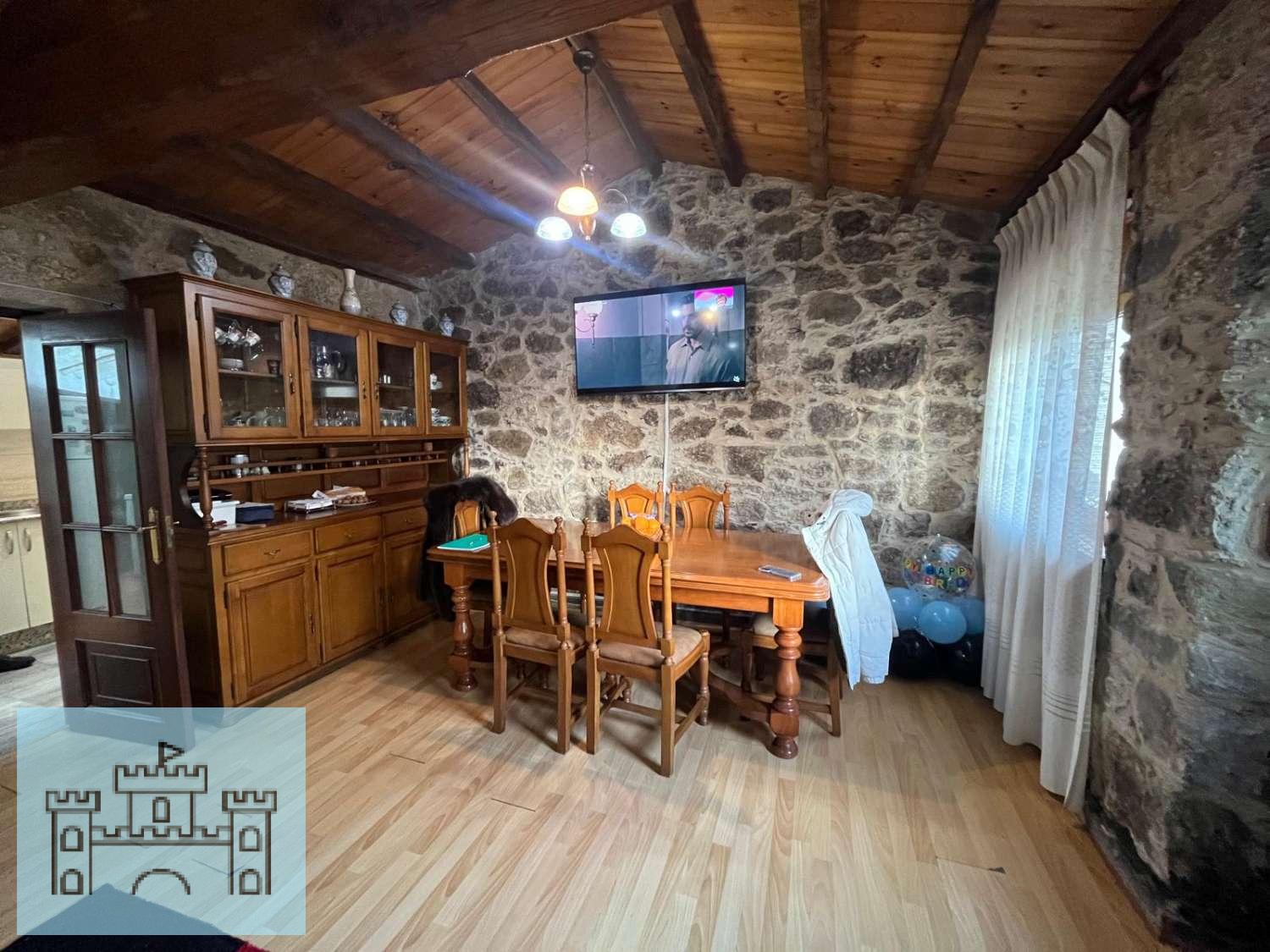 La proprietà dispone di tre camere da letto, due bagni, un ampio soggiorno, una cucina e una lavanderia. Include inoltre un terreno di 300 m² antistante e un garage. Questa affascinante casa tradizionale vanta muri in pietra a vista.