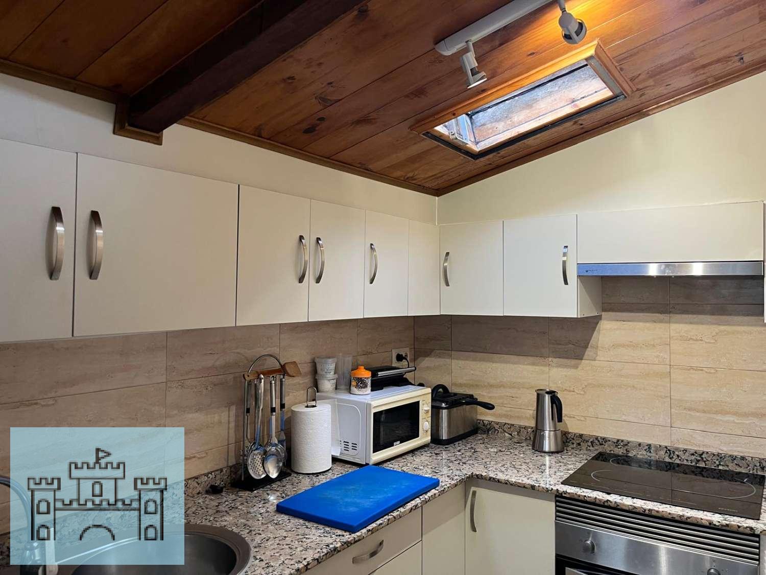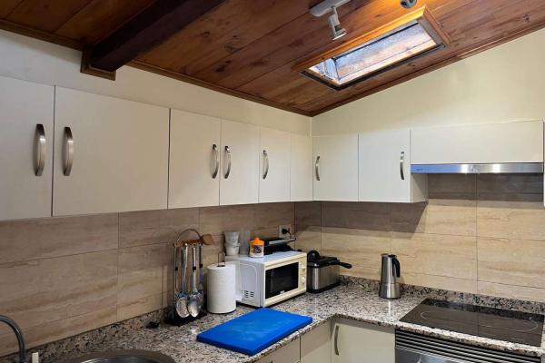 La casa è distribuita su più livelli. Al piano terra si trovano un ampio soggiorno, una cucina completamente attrezzata e una lavanderia. Il soppalco ospita una spaziosa camera da letto con bagno privato e un ampio armadio a muro.